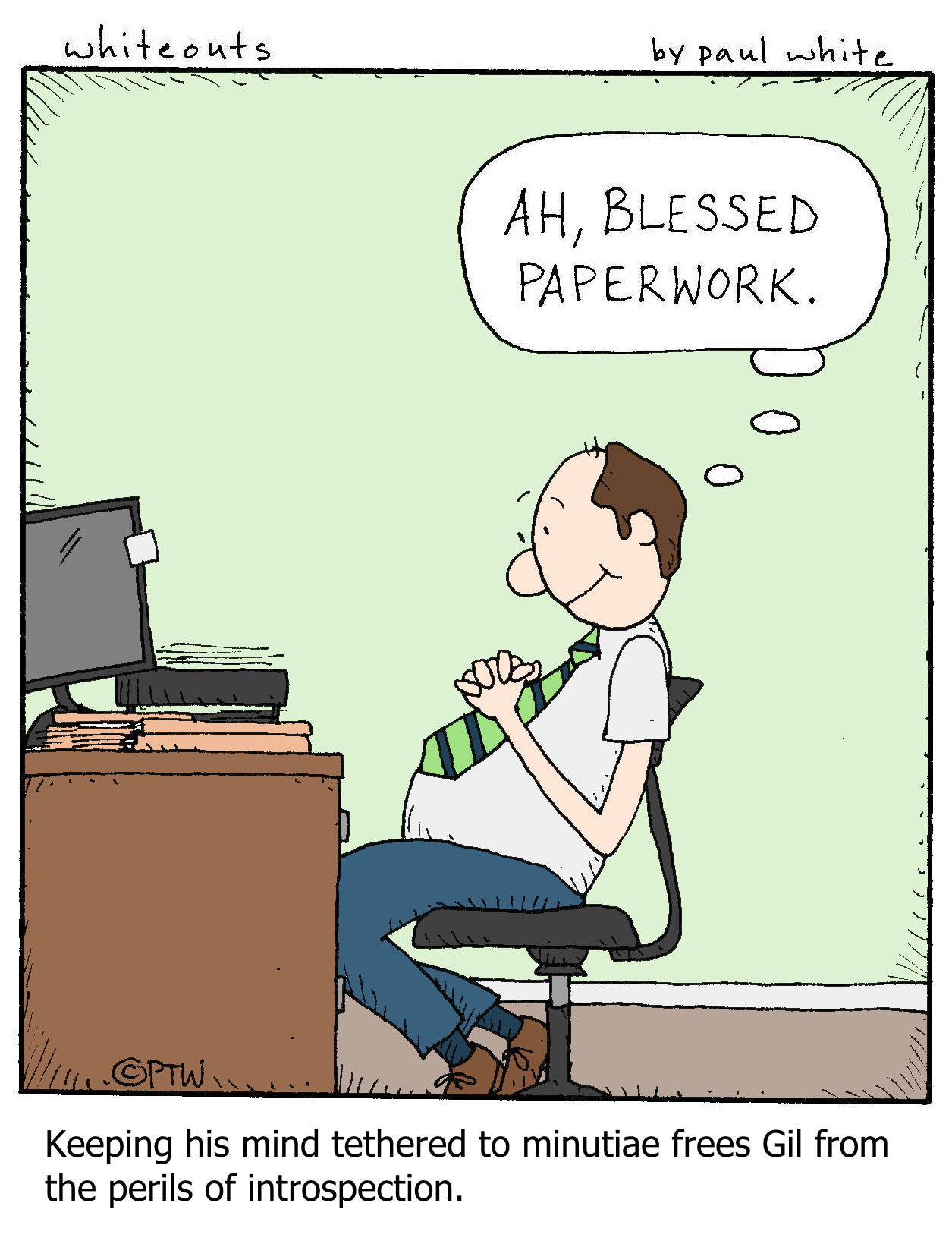 I’d be curious to know what percentage of people would rather do paperwork than reflect on the deep questions of life. I’m sure there’s a study out there somewhere…