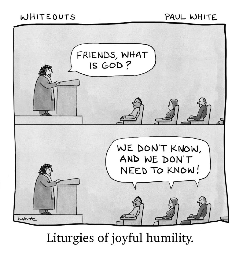 There is much that can be and has been said about God throughout the centuries, some of it with a degree of certainty that strikes me as odd, or even arrogant. Some may think the imagined liturgy below swings the pendulum too far in the other direction. Fine. I see it as being comfortable with and welcoming to Mystery.