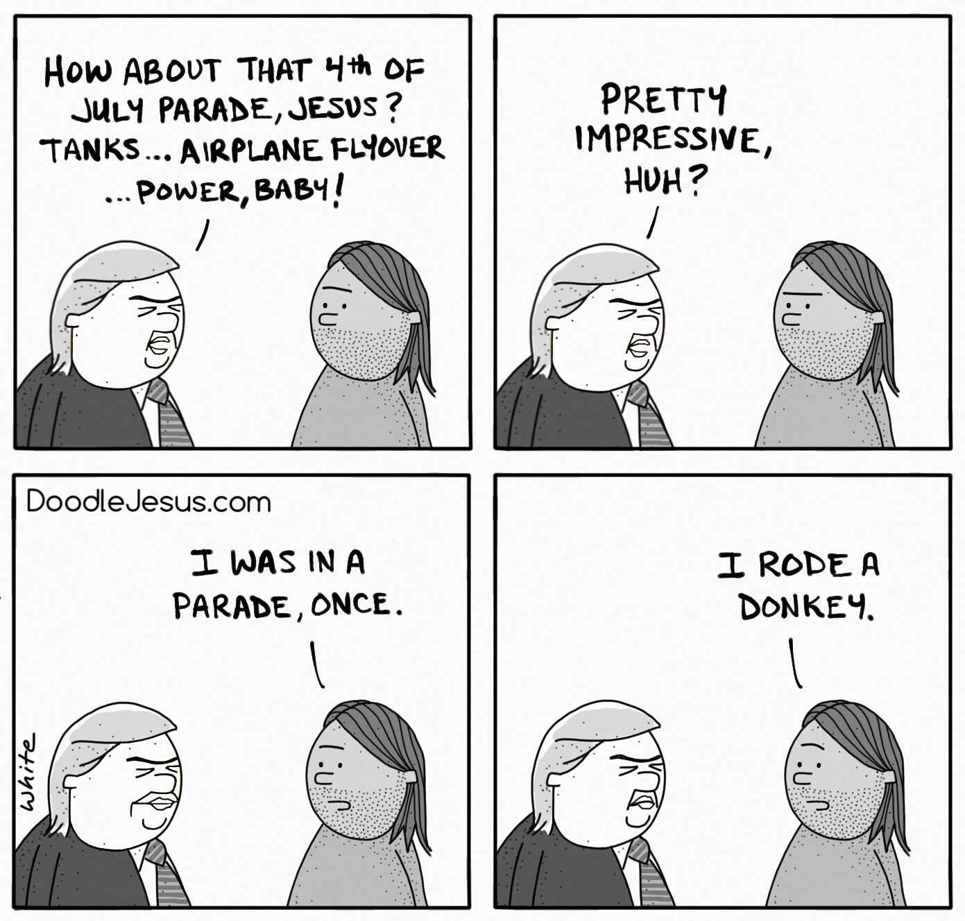 Cartoon below and more thoughts, including a recommendation to a timely podcast episode over at DoodleJesus.com