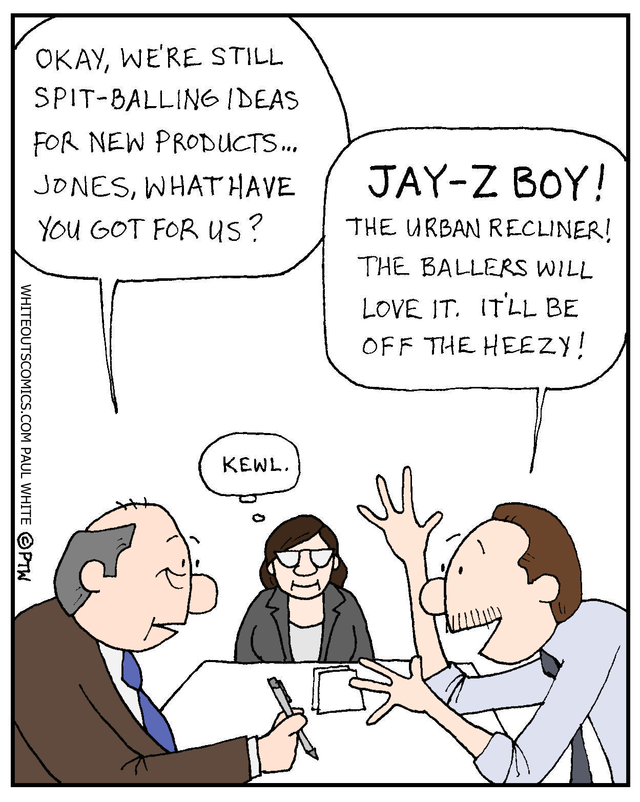 I’m not celebrating irresponsibility here as much as enjoying the use of vocabulary to somewhat mask irresponsibility. Big words will always obfuscate middle management. And I gave the boss a mustache because it feels like all surly bosses should have a mustache.