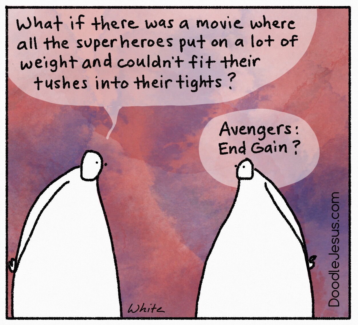 Commentary on today’s cartoon and my thoughts about superhero films can be found at DoodleJesus.com