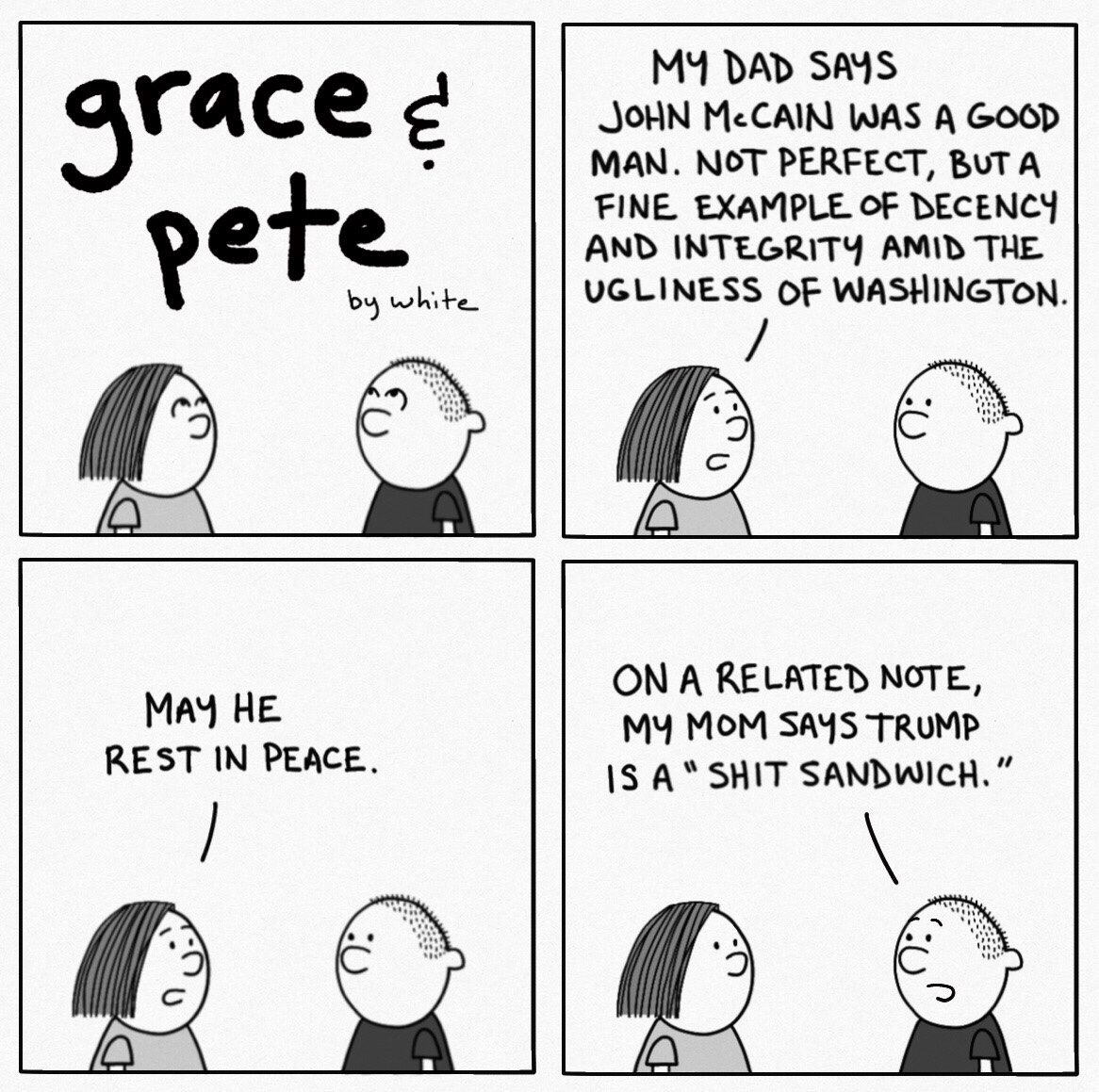 Posted on August 26, 2018 by pablo Grace and Pete Trying something new here. Might get a little blue at times. McCain will be missed… Share this: Click to share on X (Opens in new window) X Click to share on Facebook (Opens in new window) Facebook Click to share on Tumblr (Opens in new window) Tumblr More Click to email a link to a friend (Opens in new window) Email Click to share on LinkedIn (Opens in new window) LinkedIn Click to share on Pinterest (Opens in new window) Pinterest Like Loading...