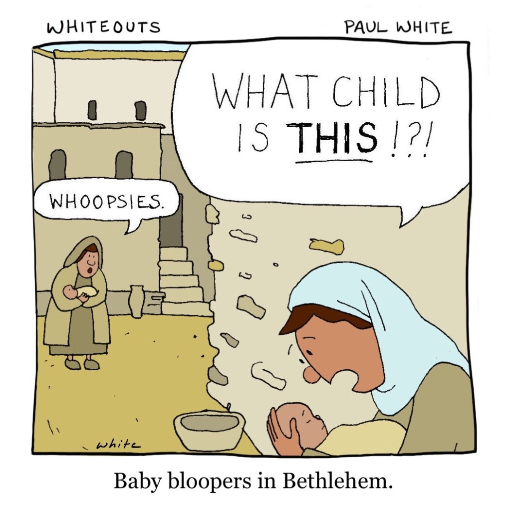 An old cartoon. Imagine mistakenly coming home with the Son of God after picking him up from day care…
