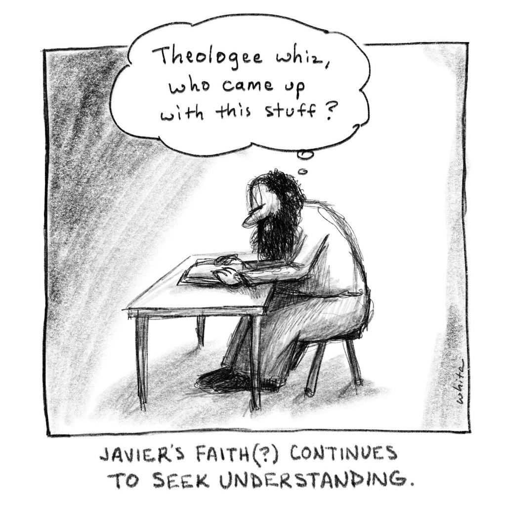 Here’s a cartoon for theology nerds. A more-human-than-divine Jesus bartering with the Holy.