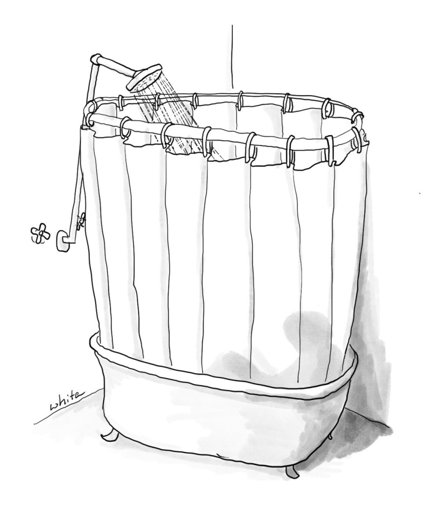 Today’s prompt: shower curtain. Was tempted to add some words to the drawing but I think it speaks just fine on its own.